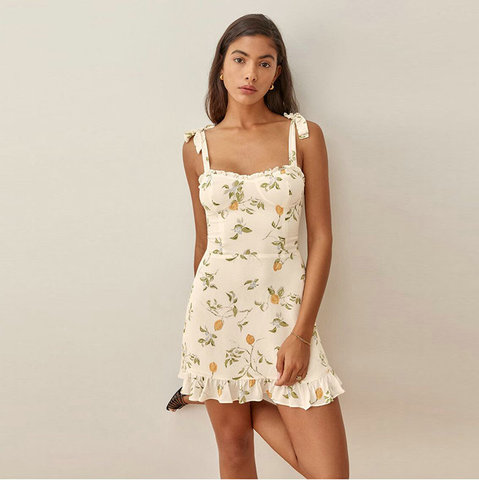 Spot 054 # New Arrival2024 Floral Sexy Medium Longsilm french retro Hosenträger Dress retro Damen bekleidung